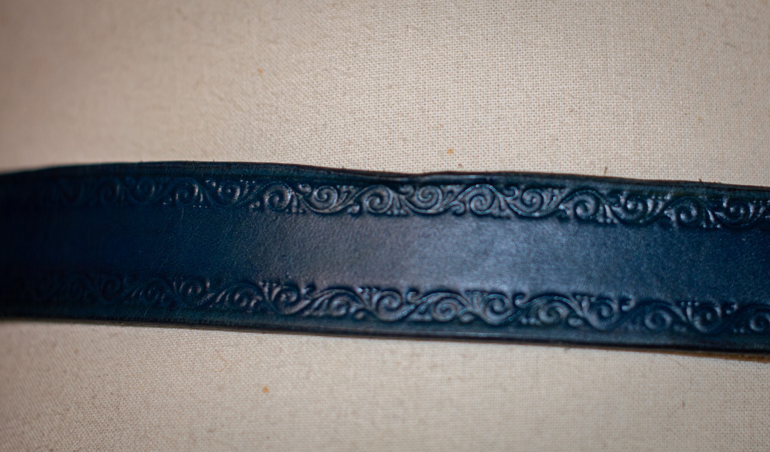 Longueur : environ 130 cm sans la boucle ou légèrement plus selon les peaux